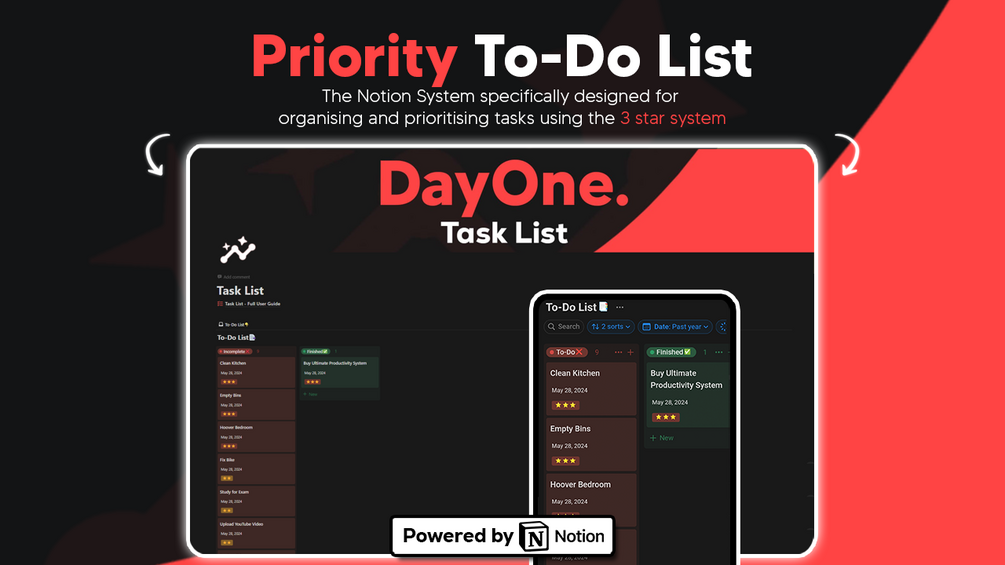 The Day One Task List is a simple yet effective tool for ensuring you keep on top of your tasks!🥇